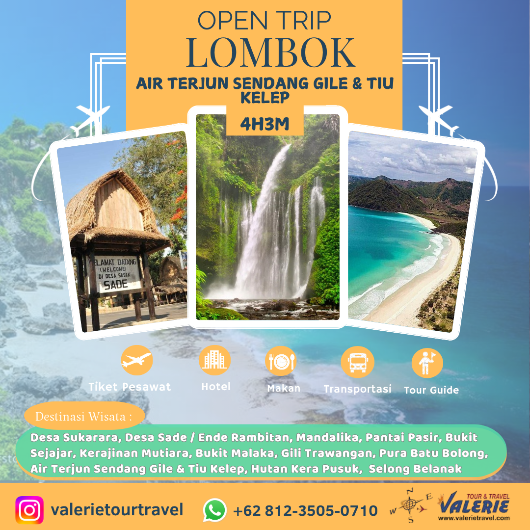 4H3M OPEN TRIP LOMBOK AIR TERJUN SENDANG GILE & TIU KELEP